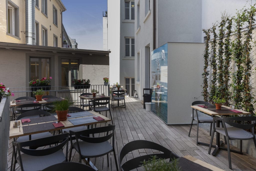 Geniessen Sie nach einer intensiven Sitzung einen Kaffee an der frischen Luft. Sie können sich auch mit Ihren Geschäftspartnern zum Lunch unter freiem Himmel treffen. Auch für inspirierende Gruppenarbeiten oder Brainstormings steht Ihnen unsere Terrasse im Seminar- und Konferenzhotel gerne zur Verfügung.