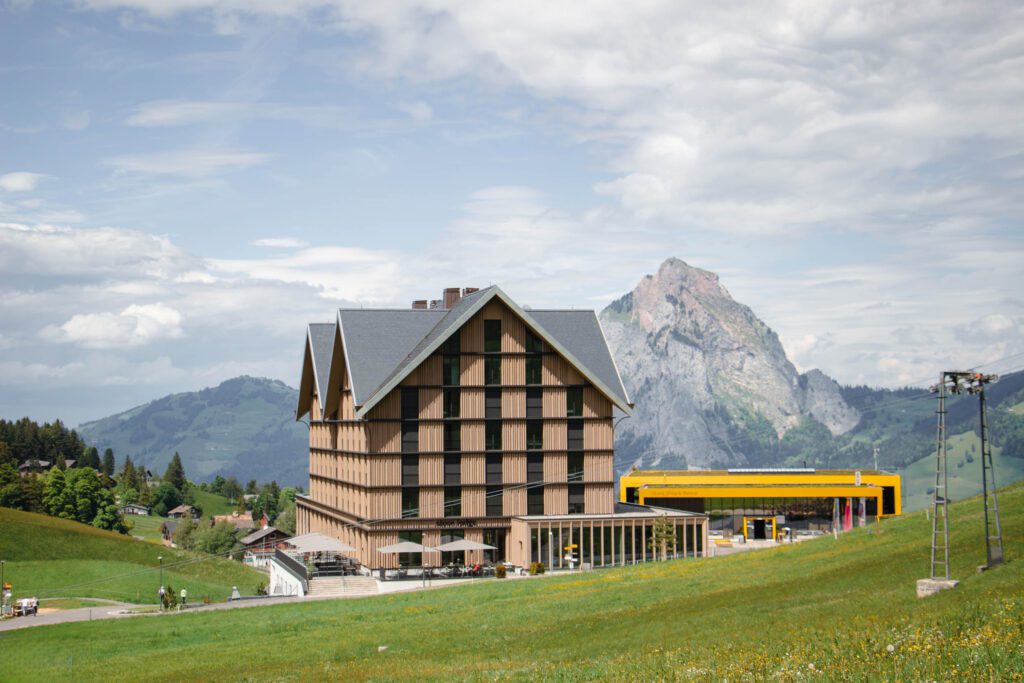 Mitten in den Bergen bietet das neue Seminarhotel und Tagungszentrum Stoos Lodge perfekte Bedingungen für produktive Meetings und kreatives Arbeiten. Das Design- und Lifestylehotel in der Zentralschweiz liegt auf 1300 Metern über Meer, direkt neben der Bergstation der Weltrekordbahn.