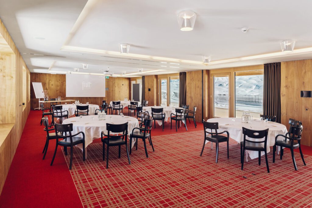 The Frutt Mountain Resort has versatile event rooms that are suitable for a wide variety of occasions. From focused conferences and seminars to festive banquets and private celebrations, every conference finds the right setting here. All rooms are equipped with state-of-the-art technology and offer plenty of daylight thanks to large windows. Bright colors and spacious work tables create a pleasant and productive atmosphere.